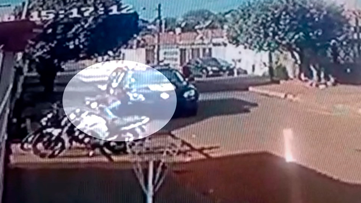 Imagens de uma câmera de segurança mostram quando o carro atinge o jovem e passa por cima da bicicleta
