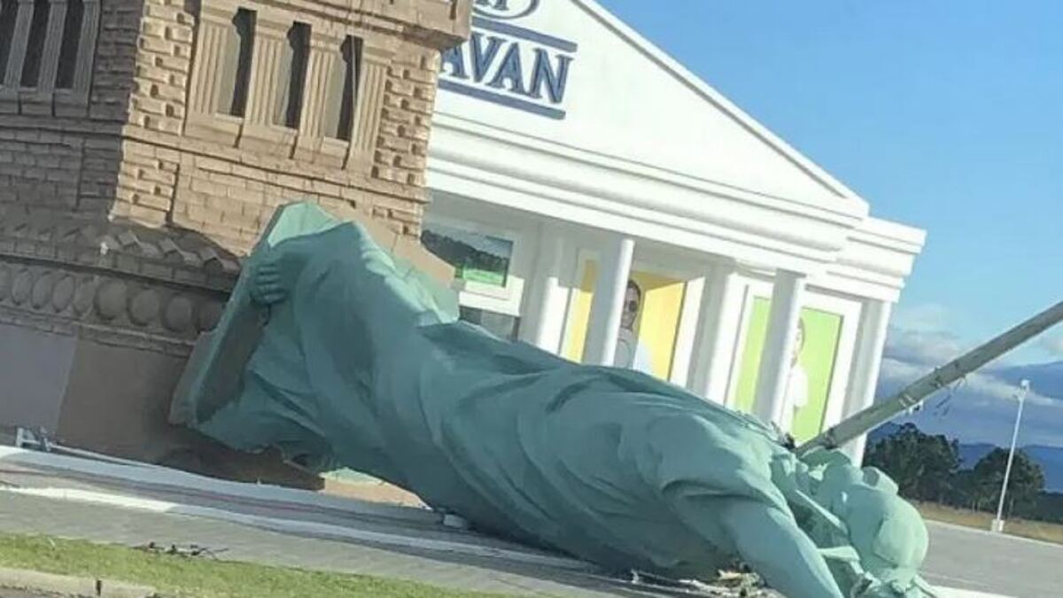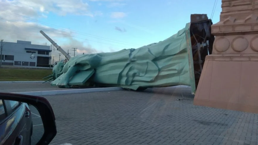 A ventania de um ciclone que passou pela cidade de Capão da Canoa, no Rio Grande do Sul, acabou gerando estragos na região na madrugada desta segunda-feira (24). Entre os danos, a estátua da liberdade de uma loja da Havan, que caiu. A figura é símbolo das rede no Brasil, cujo proprietário é o empresário Luciano Hang. As informações são do site IstoÉ.