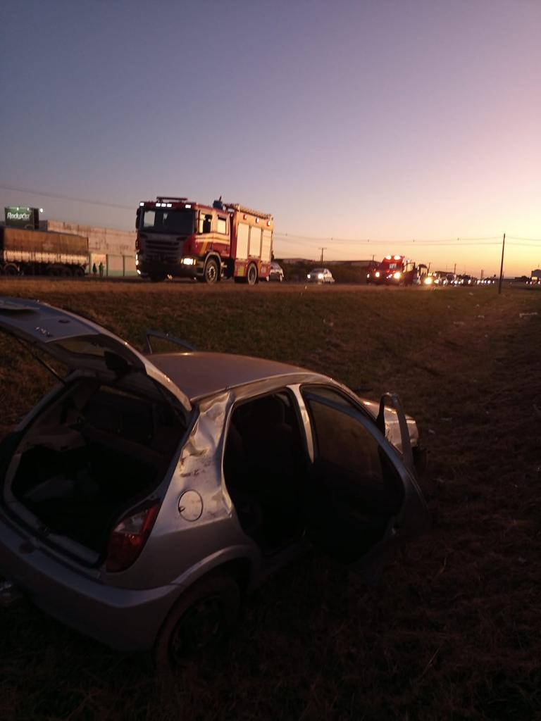 Ao chegarem ao local do acidente, os bombeiros depararam-se com cinco vítimas, todas conscientes, orientadas e conseguindo caminhar mesmo com lesões leves. Três das vítimas receberam atendimento dos bombeiros, enquanto as outras duas foram cuidadas pela Unidade de Suporte Básico (USB 3) da concessionária Triunfo.