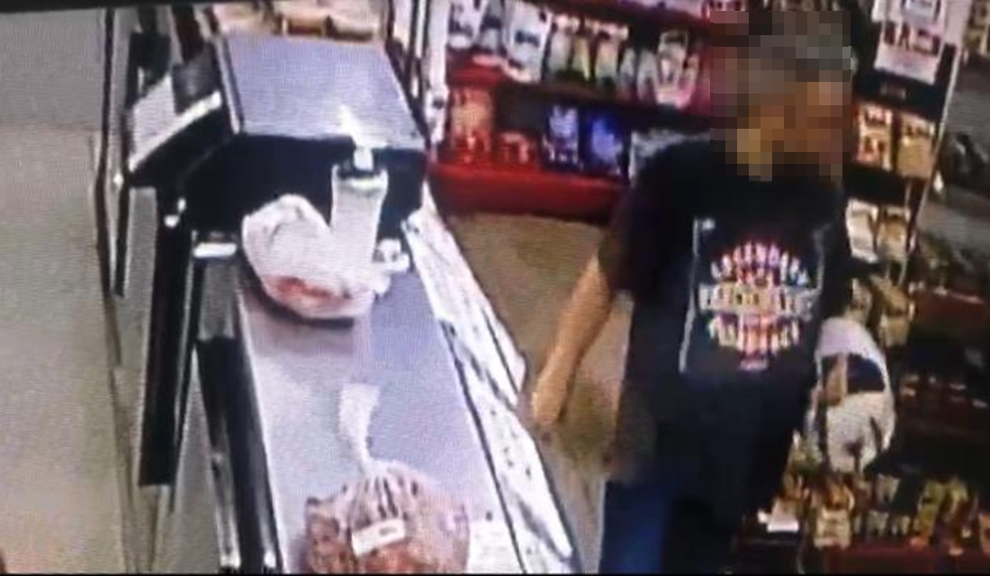 No vídeos que a reportagem teve acesso, é possível ver que o suspeito entra no estabelecimento com um capacete. Depois disso, ele vai até o açougue, pede a carne e espera o açougueiro embalar, pesar e etiquetar a peça. É possível ver, também, que ele olha bastante para os lados.