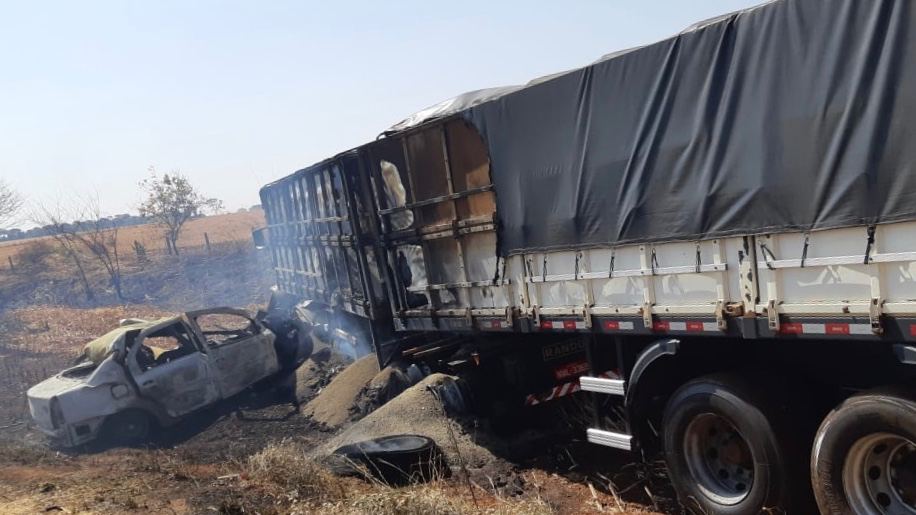 O choque provocou a explosão do carro e iniciou um incêndio no sudoeste de Goiás