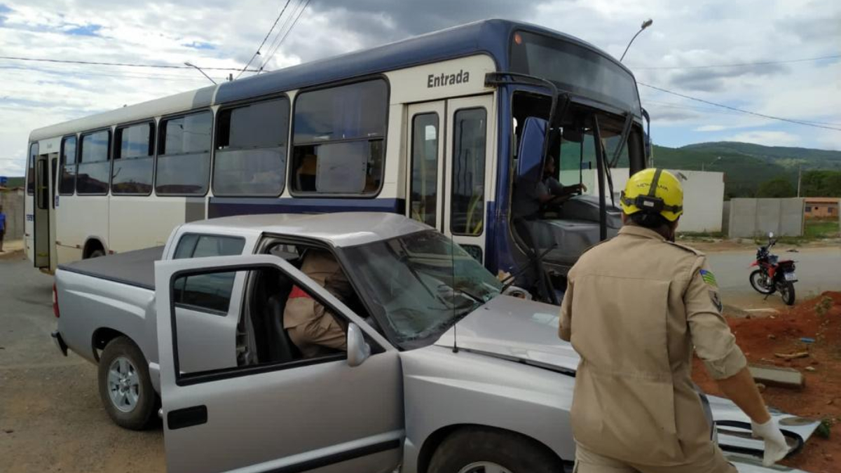 Uma colisão entre uma caminhonete e um ônibus deixou o condutor do carro ferido. O acidente aconteceu na tarde de segunda-feira (25), no Jardim do Cerrado, em Goianésia. De acordo com o Corpo de Bombeiros, a vítima, de 51 anos, ficou presa entre as ferragens e apresentava confusão mental.