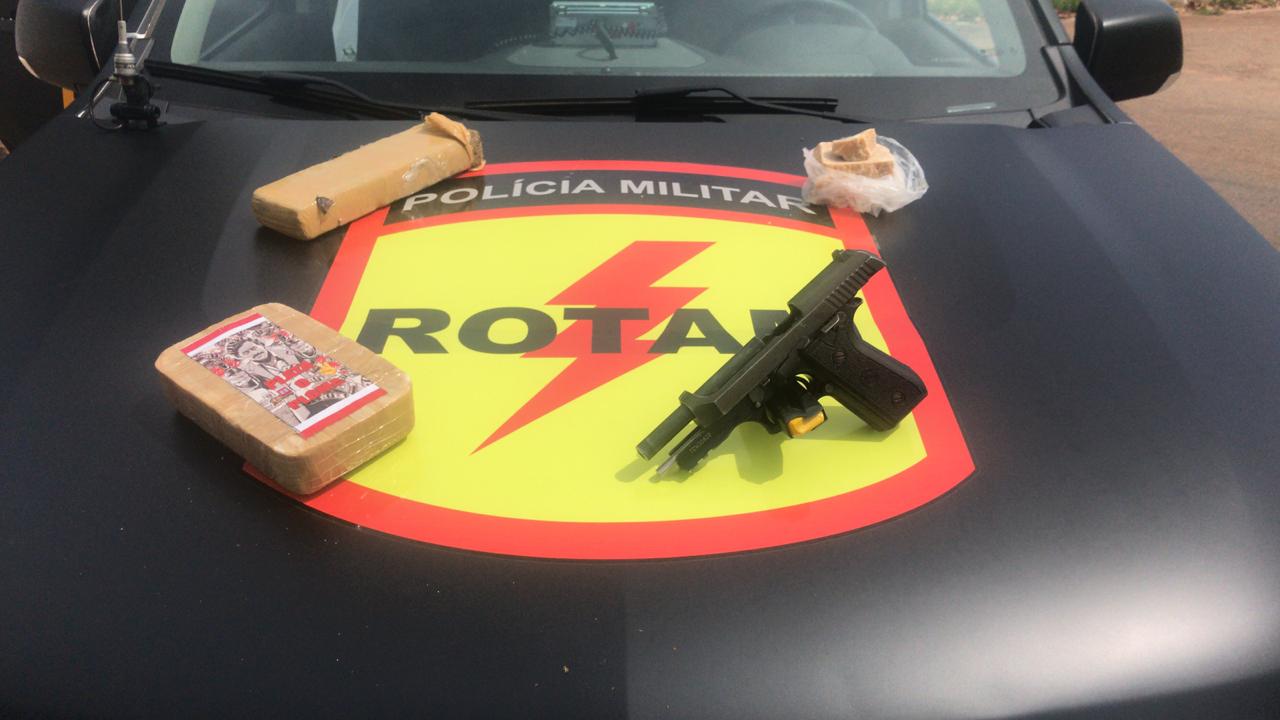 Com homicida, Rotam apreende drogas, pistola, moto roubada e até granada em Goiânia