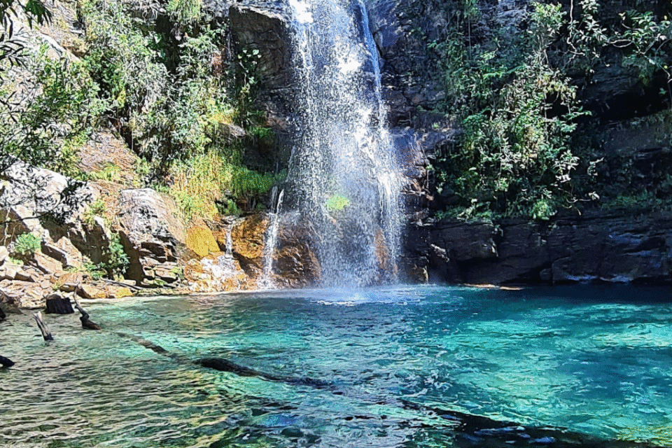 A dica é chegar na Cachoeira Santa Bárbara entre 11h e 14h. O local é cercado de vegetação e, nesse horário, o sol está totalmente acima dela, o que faz com que a água fique ainda mais clara.