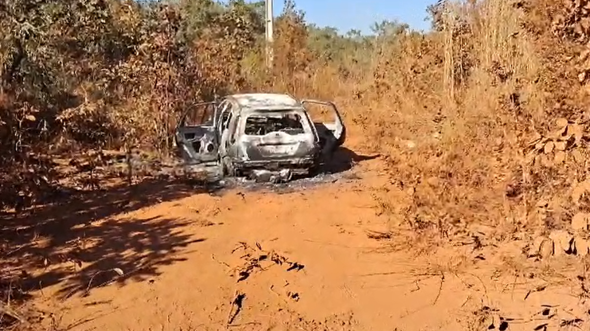 Polícia suspeita que pode ser de homem desaparecido. Veículo estava em uma estrada de chão