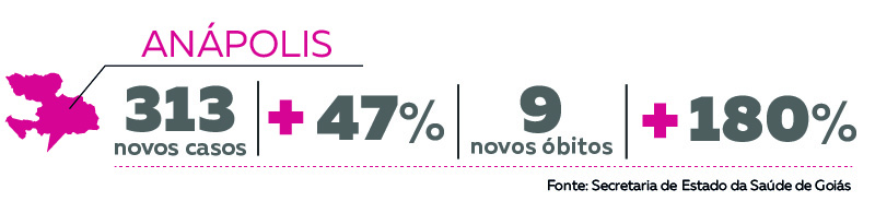 Entre as três maiores cidades do estado, Anápolis registrou o maior aumento. O número de casos saiu de 653 para 966, um crescimento de 47,93% no período. Proporcionalmente, a alta foi maior do que a notada no período anterior, quando o acréscimo foi 36,86%.