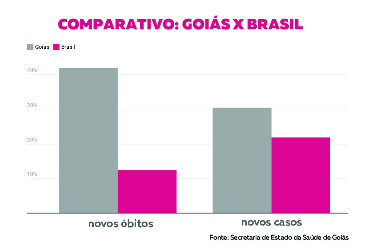 Os números também mostram que tanto o número de casos quanto de óbitos tem crescido acima da média nacional. Em todo o país, o número de confirmações da doença cresceu 21,88% no período, chegando a 1.496.858 infectados, de acordo com o Ministério da Saúde (MS). Já o número de vítimas fatais cresceu 12,57% e chegou a 61.884. Entretanto, a taxa de letalidade no estado de Goiás (2,07%) é menor do que a média brasileira (4,1%).