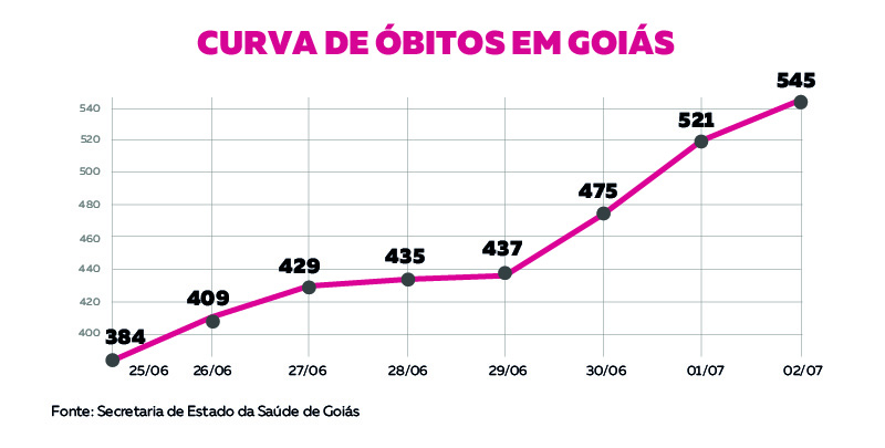 Os números mostram que a doença se espalhou com menor velocidade no território goiano com relação à semana anterior. No último levantamento semanal feito pelo Mais Goiás, que apurou dados publicados entre os dias 18 e 25 de junho, o crescimento foi de 50,50%. O aumento também é menor do que o apurado entre os dias 11 e 18 de junho (73,67%) e do que o levantado entre os dias 4 e 11 de junho (53,21%).
