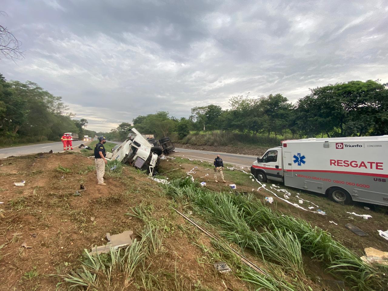 Segundo informações repassadas pela Triunfo Concebra, o acidente ocorreu por volta das 18h. O caminhão trafegava pela mencionada rodovia quando, por motivos ignorados, saiu da pista e invadiu o canteiro central e tombou. Não estava chovendo no momento do acidente.