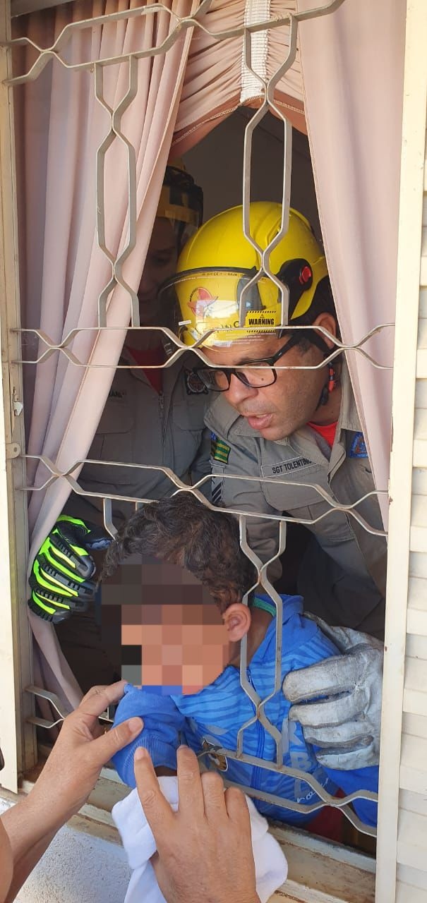 Na manhã desta segunda-feira (15) o Corpo de Bombeiros de Senador Canedo foi acionado para resgatar um bebê de apenas 1 ano e 6 meses, que ficou preso nas grades de uma janela em casa. No local, enquanto um bombeiro acalmava a mãe preocupada, os outros membros da equipe se concentraram em libertar o bebê.