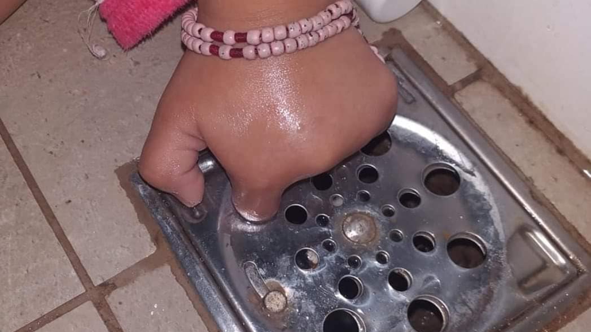 Os familiares da menina chegaram a acionar o Corpo de Bombeiros para auxiliar na situação, mas conseguiram retirar o dedo da criança do ralo antes da chegada da equipe.