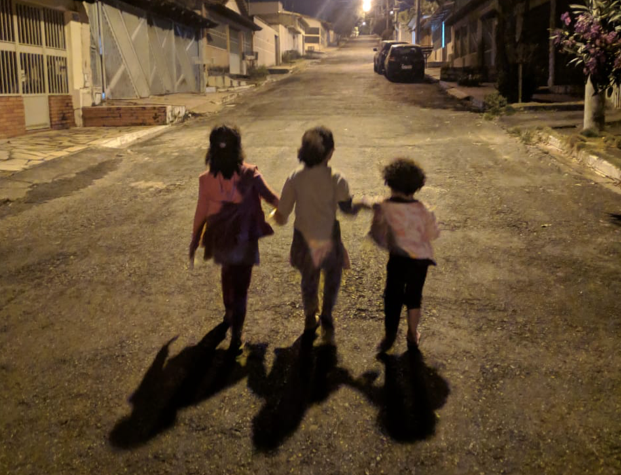 As três decidiram que seria bom enviar mensagens para o resto da vizinhança confinada e aos parentes – entre eles a tia Márcia, que contraiu o coronavírus.