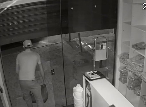 Um homem arromba a porta do estabelecimento e furta toda a mercadoria que havia chegado naquele dia. Com a ajuda de outros dois comparsas, coloca os fardos de roupas dentro de um veículo e vão embora.