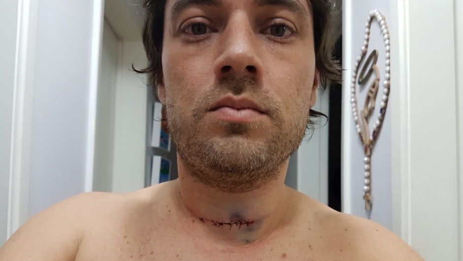 Administrador Daniel Santana foi ferido no pescoço por uma linha com cerol (Foto: divulgação/Leitor Mais Goiás)