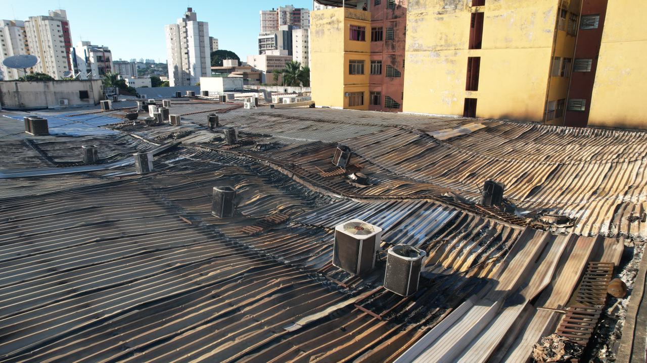Defesa Civil aponta risco de desabamento em shopping após incêndio, em Goiânia