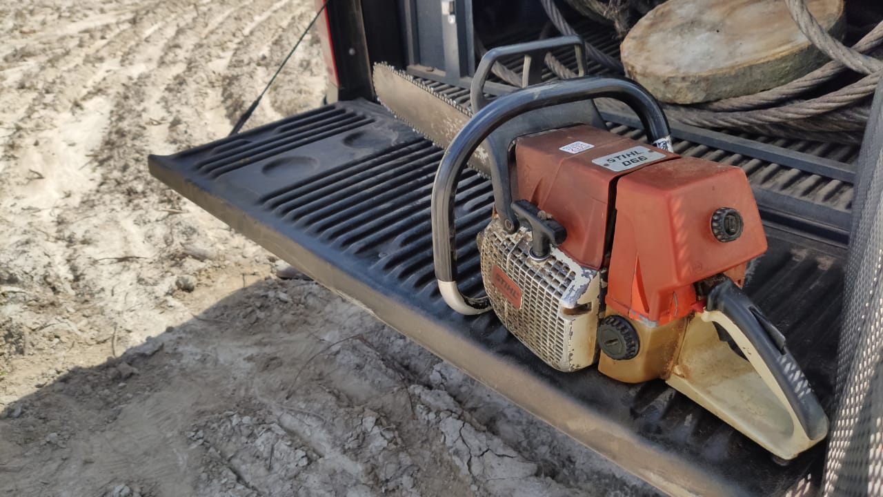 A delegada à frente das investigações, Lara Menezes, o local foi desmatado com um sistema conhecido como correntão. Nele, a ponta de um cabo de aço é amarrado na ponta de um tratar e a outra em um segundo veículo. Com isso, é capaz de levar toda a vegetação. “É um jeito mais barato e mais rápido para se fazer em desmatamento, mas também é um jeito mais difícil de identificar quais espécies foram derrubadas”, pontua.