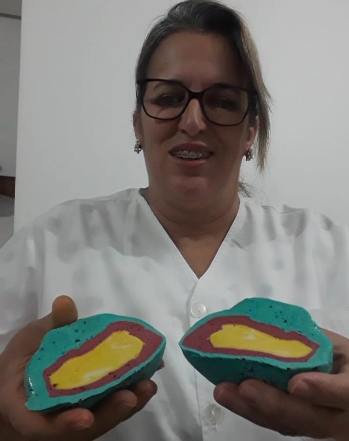 A professora Cláudia Dias, de 49 anos, leciona ciências da natureza para turmas do 6º ao 9º ano em um colégio estadual do município de Nazário. Cláudia, que dá aulas há cerca de 26 anos, conta que está no regime remoto de ensino desde o dia 18 de março, quando, assim como todos os outros professores, assumiu o compromisso de transformar o computador e o celular na sala de aula. No entanto, a educadora admite que não tem sido fácil.