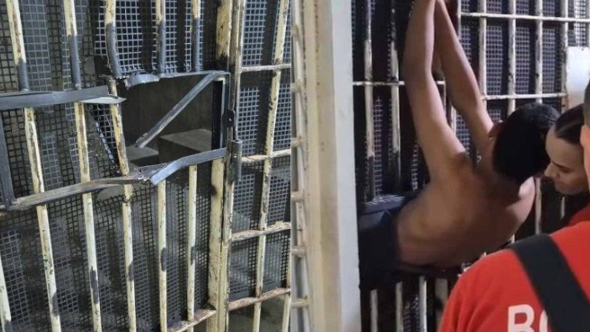 Fracassou a tentativa de fuga que um detento de 19 anos tentou empreender de uma cela na 6ª Delegacia de Polícia do Paranoá, no Distrito Federal. O rapaz ababou entalado nas grades.