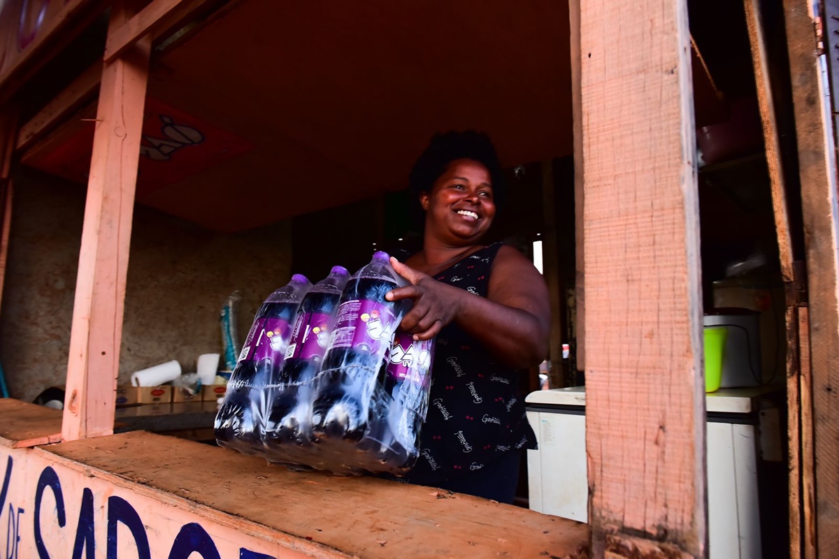 Questionada como surgiu a ideia do comércio, ela conta empolgada que, no Natal passado, ganhou R$ 250 de presente e decidiu um investir. Começou com os caldos e as pessoas gostaram. Decidiu, então, continuar. O que ela ganha por mês dá para construir a casa dela, na ocupação – ela vive na casa de um sobrinho, no local –, e comprar as coisas da residência, principalmente para as crianças.