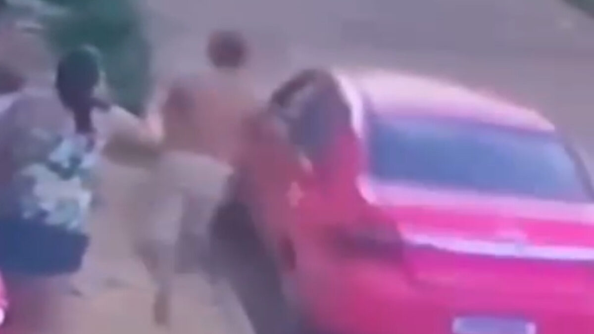 Em seguida, o homem que portava a arma de pressão dá vários disparos contra o carro. Dois deles atingiram a testa do motorista.