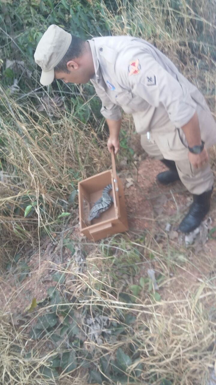 Lagarto teiú foi solto em reserva ambiental (Foto: CBMGO)