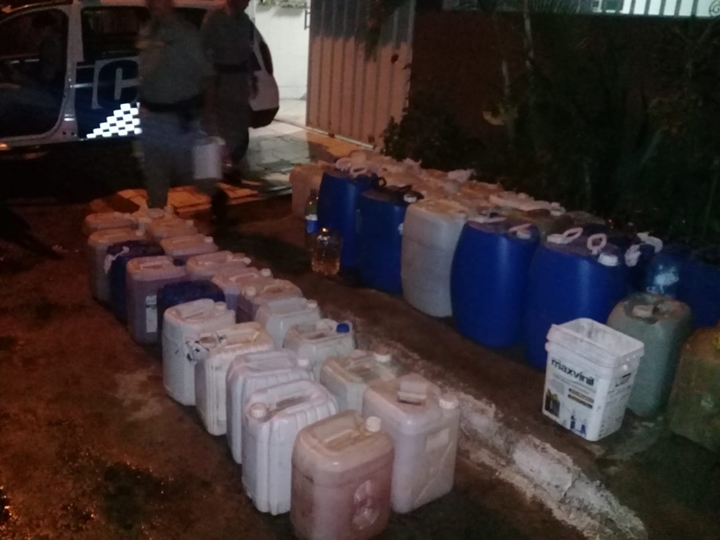 Foram apreendidos cerca de 2 mil litros de gasolina e álcool e um revólver calibre 38