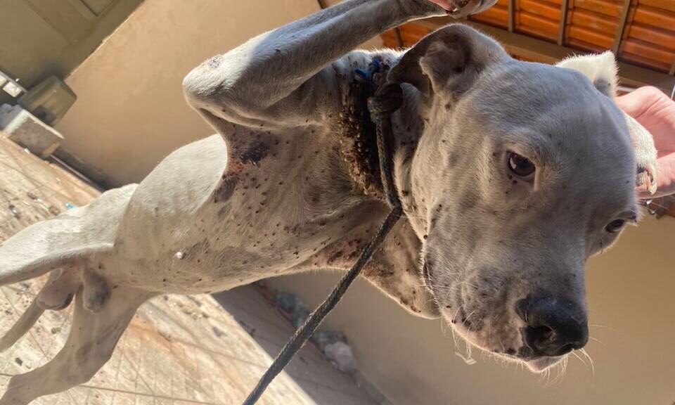 Animal foi encontrado debilitado, magro, com a gengiva branca, infestado de carrapatos e sinais de anemia em uma casa do Jardim Europa