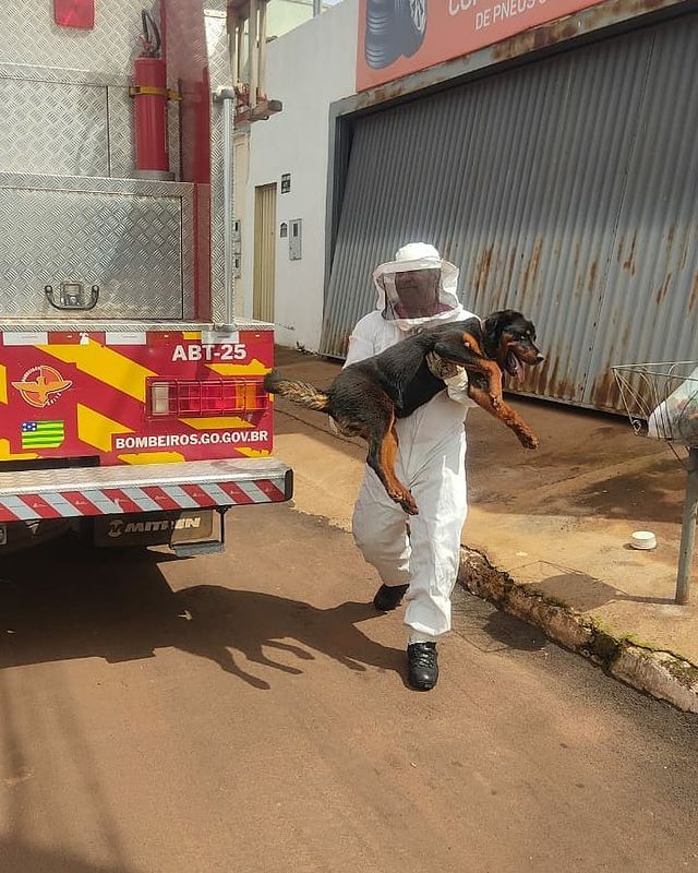 Na manhã desta quinta-feira (18), uma equipe dos bombeiros foi acionada para salvar um cachorro que estava sendo atacado por abelhas no Setor Morada do Sol, em Rio Verde. Com as roupas apropriadas, o animal foi resgatado e deixado sob os cuidados de uma equipe veterinária e de seu dono.