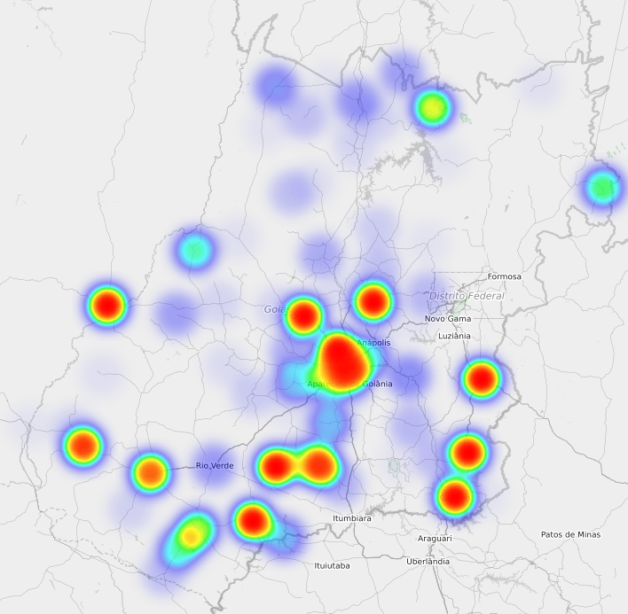 Uma mapa de calor divulgado pelo Observatório mostrou, ainda, o nível de incidência de resgates por região de Goiás. A variação de cores frias para cores quentes (de forma crescente) indica locais de maior intensidade de resgates, residência declarada e naturalidade de egressos, conforme a seleção realizada quanto à perspectiva desejada.