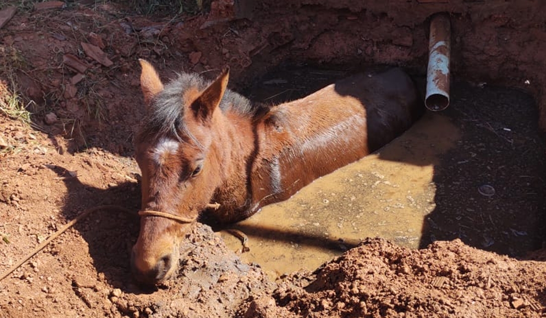 O Corpo de Bombeiros Militar (CBM) foi acionado para tirar o equino do local. A equipe viu que o buraco tinha aproximadamente dois metros de profundidade.