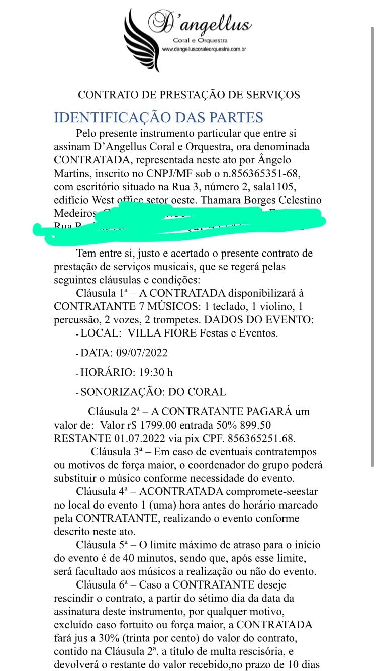O fim das atividades da empresa “D’Angellus”, especializada em fornecer orquestras e corais para casamentos, transformou-se em dor de cabeça para 34 casais que a contrataram. Uma parcela desse grupo de clientes já pagou o valor integral pelo serviço dos músicos e outra parcela quitou parte do valor. Nenhum deles sabe se vai conseguir reaver o dinheiro ou se poderá contar com a D’Angellus no dia da cerimônia. A empresa funcionava em Goiânia e comunicou o seu fechamento na quinta-feira (9).