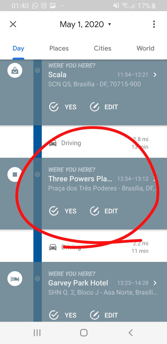Gayer, no entanto, diz que tem provas de que não estava no momento da agressão. Entre elas, há o registro do GPS do smartphone, que mostra a permanência dele das 12h34 às 13h12 na Praça dos Três Poderes. Ele cita ainda o próprio vídeo que publicou no Instagram. “Eu não sabia do que se tratava. A partir da moradora de rua denunciei, e foi um erro, se tratar de falsos médicos. Nem sabia que eram enfermeiras”, se defende. O vídeo apagado já tinha mais de 20 mil visualizações.