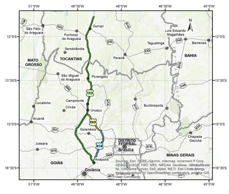 – Rodovia BR-153/TO – de Aliança do Tocantins/TO à divisa de estado com Goiás;
