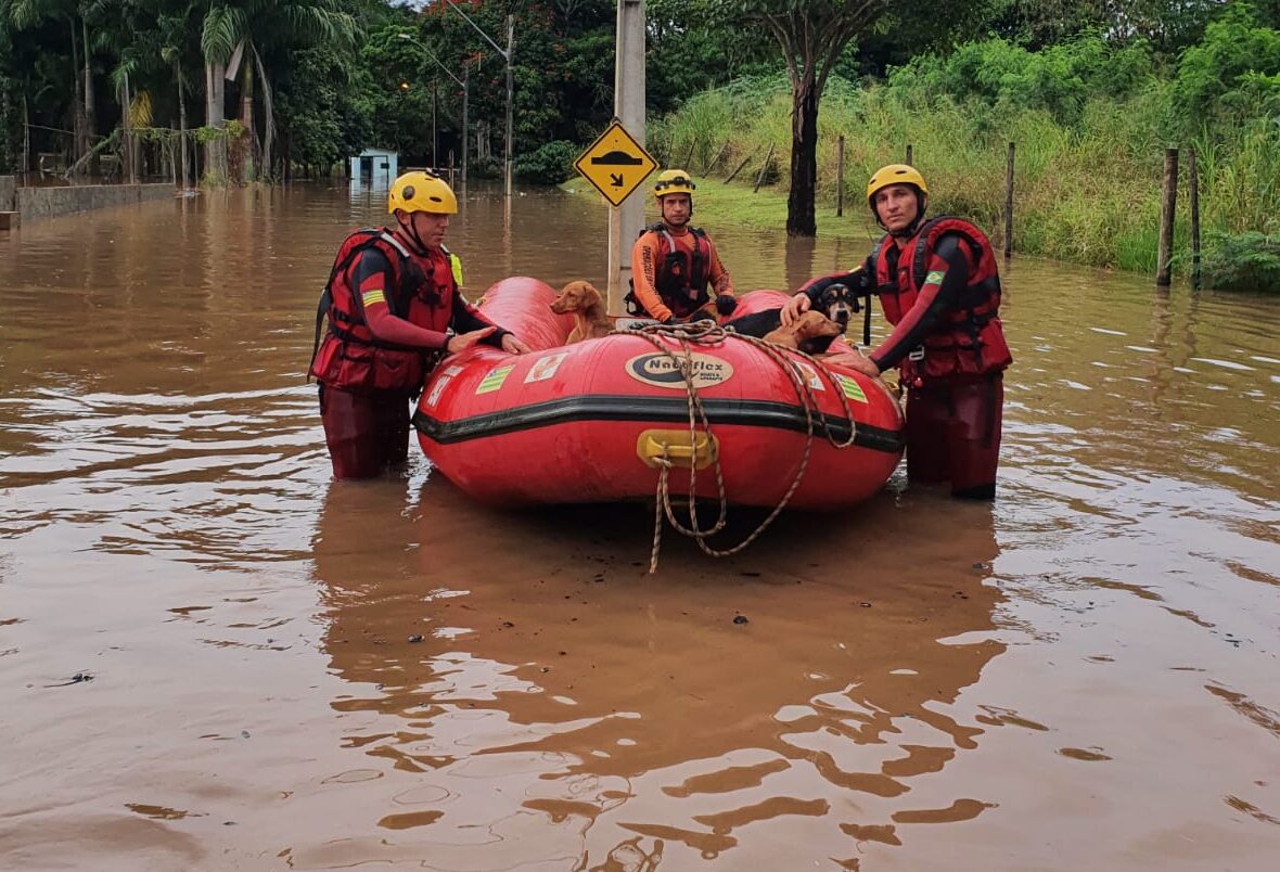 Os quatro cachorros foram resgatados em embarcações e entregues ao proprietário sem ferimentos.