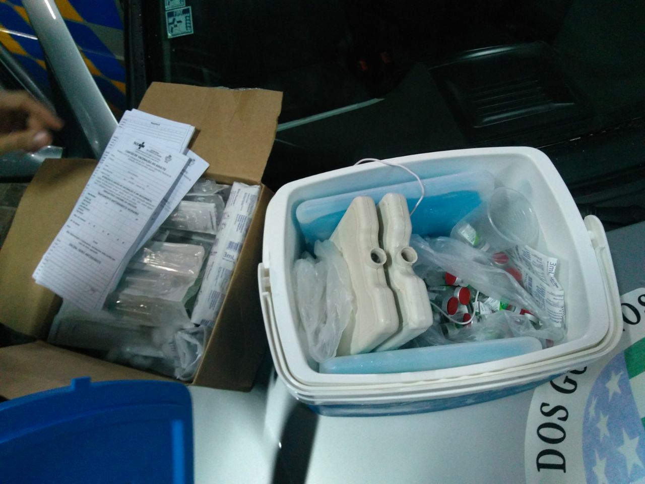 Segundo informações do tenente Gustavo, da Polícia Militar (PM), os suspeitos estavam em um Ford Fiesta vermelho no conjunto Guadalajara, região Sudoeste de Goiânia. Na abordagem, foram encontradas 105 frascos, o que equivale a 1050 doses da vacina que estava em uma caixa térmica no banco traseiro do veículo.