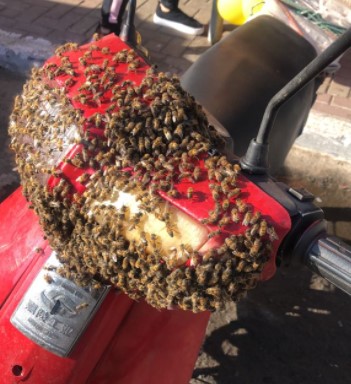 Veja imagens do enxame de abelhas que ocupou moto estacionada em Caldas Novas