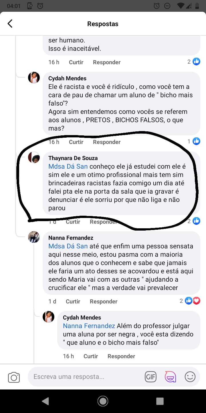 Após publicar o ocorrido nas redes sociais, alunos e ex-alunos do mesmo professor alegam ter passado por situações de preconceito e racismo e não receberam nenhum apoio da colégio. Sobre isso, o coronel afirma que não tem conhecimento e ressalta que o professor nunca causou problemas.