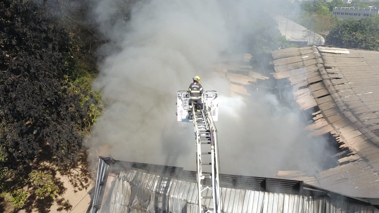Ainda de acordo com a corporação, uma parte do galpão havia colapsado e várias tendas estavam em chamas. O local era de difícil acesso, o que dificultou a aproximação das viaturas.