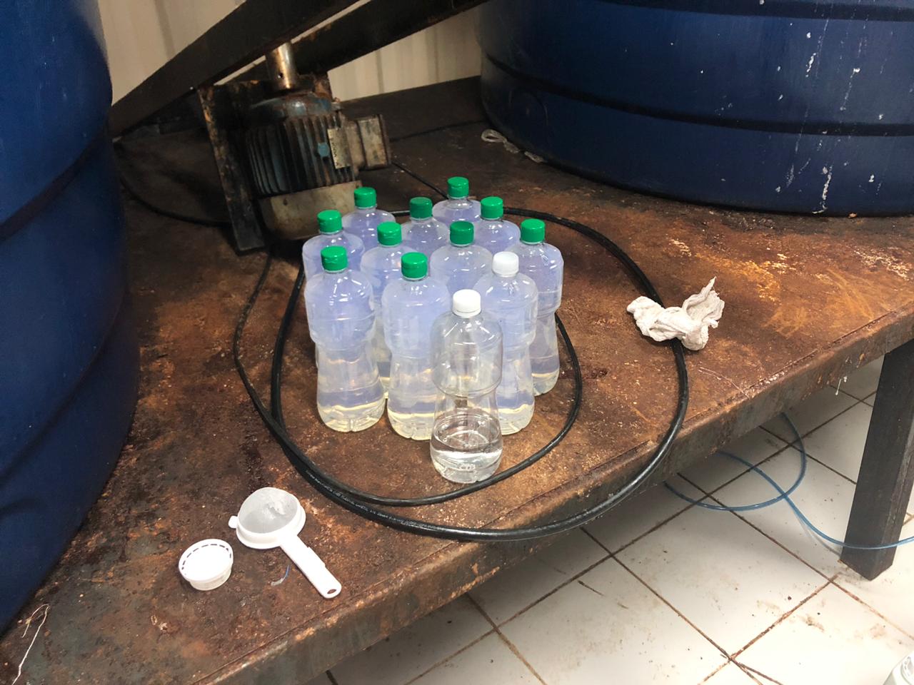 Duas fábricas de cosméticos e saneantes foram interditadas por suspeita de produção irregular de álcool em gel em Aparecida de Goiânia. Caso ocorreu na tarde desta quarta-feira (22) e resultou na apreensão de cerca de 30 litros do produto.