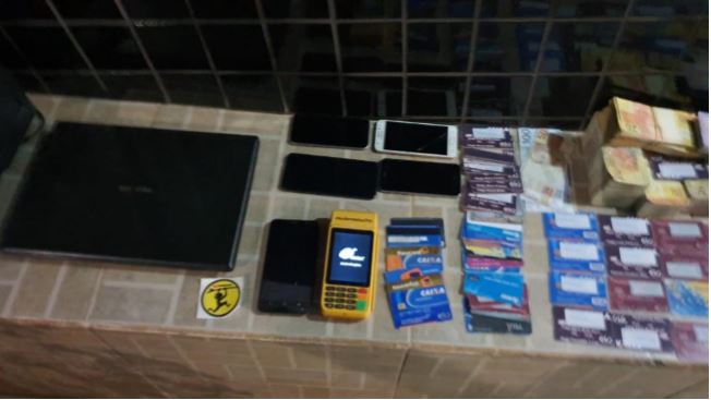 Ação policial apreendeu cédulas e cartões falsos e um simulacro de arma de fogo