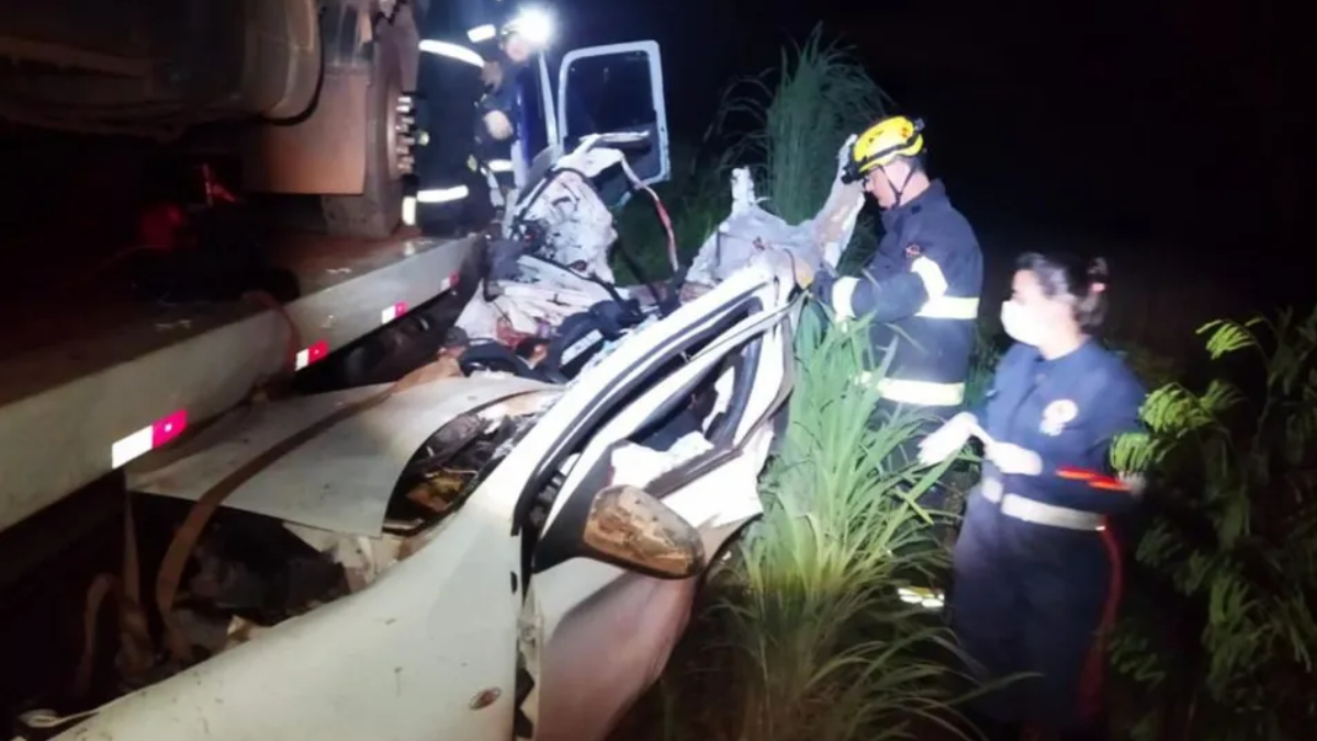 De acordo com a PRF, o condutor do caminhão não sofreu ferimentos. O acidente ocorreu na noite de quinta-feira (2), no quilômetro 170 da rodovia. A partir das imagens, é perceptível que o veículo ficou completamente destruído. O Corpo de Bombeiros precisou serrar a lataria do carro para retirar as vítimas das ferragens.