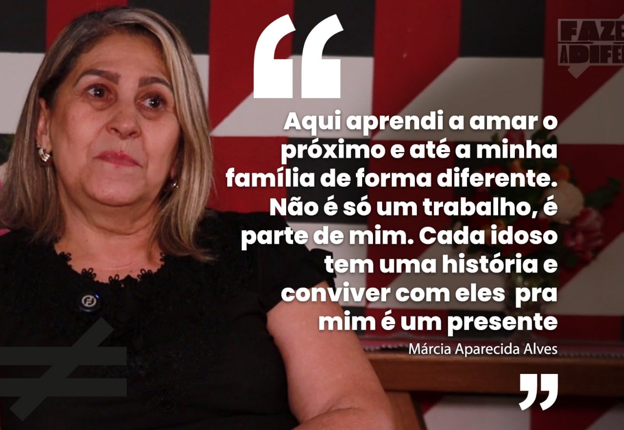 Uma das pessoas que dedica sua vida a essa missão é Márcia Aparecida Alves, que trabalha no abrigo há 30 anos. Ela revela que, quando chegou, não imaginava como aquela experiência mudaria sua forma de enxergar o mundo. “Aqui aprendi a amar o próximo e até a minha família de forma diferente. Não é só um trabalho, é parte de mim. Cada idoso tem uma história e conviver com eles pra mim é um presente [sic]”, diz, emocionada.