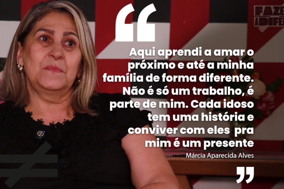 Uma das pessoas que dedica sua vida a essa missão é Márcia Aparecida Alves, que trabalha no abrigo há 30 anos. Ela revela que, quando chegou, não imaginava como aquela experiência mudaria sua forma de enxergar o mundo. “Aqui aprendi a amar o próximo e até a minha família de forma diferente. Não é só um trabalho, é parte de mim. Cada idoso tem uma história e conviver com eles pra mim é um presente [sic]”, diz, emocionada.