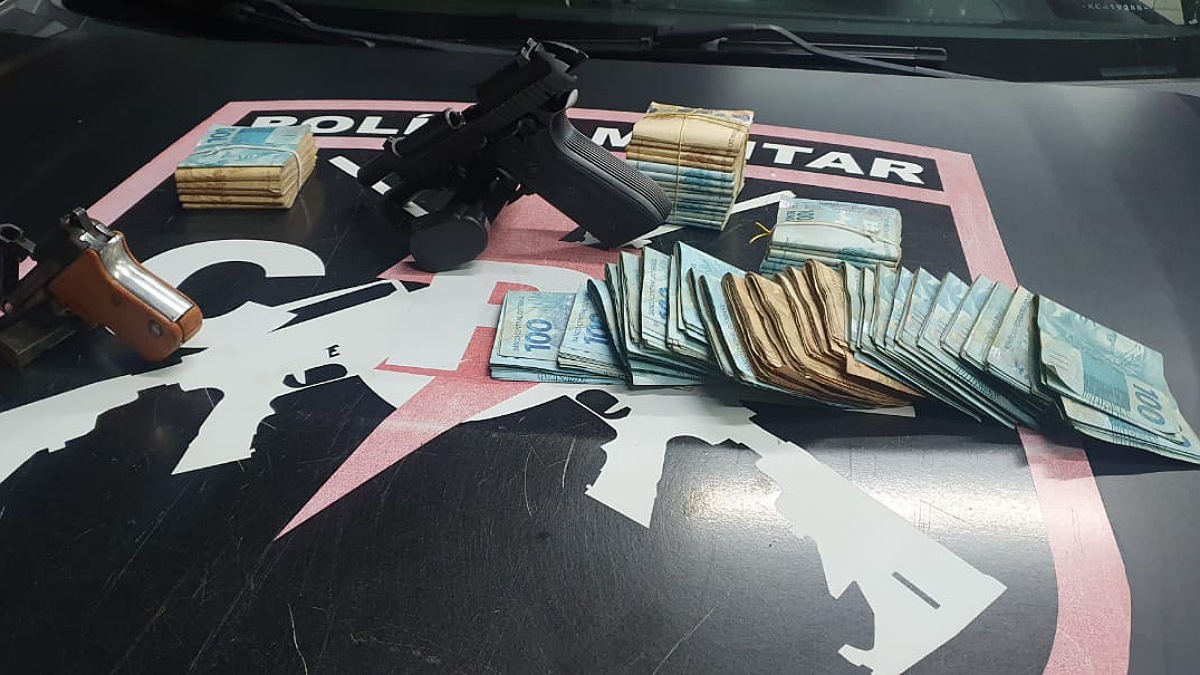 Armas e dinheiro (Foto: PM/ Divulgação)