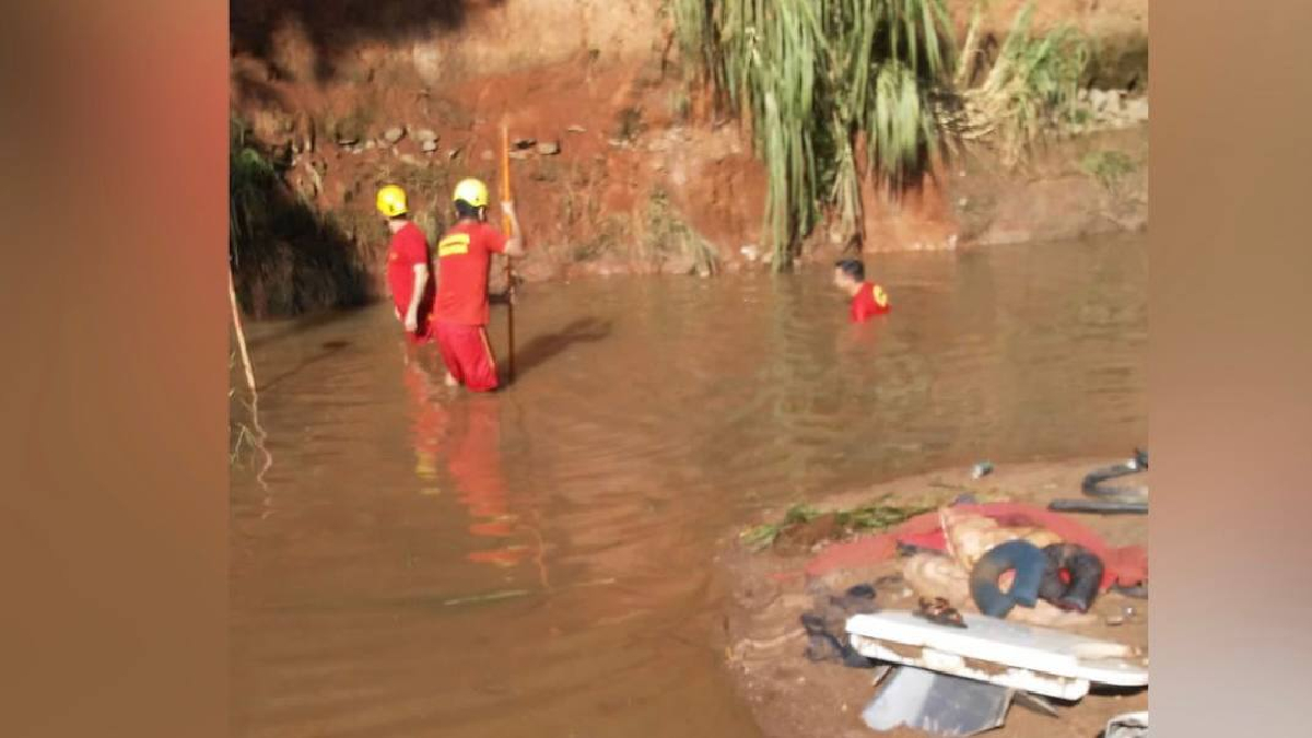Corpo de Bombeiros encontrou o corpo de Aparecida Ribeiro no leito do Córrego Santo Antônio, que passa sob a rodovia