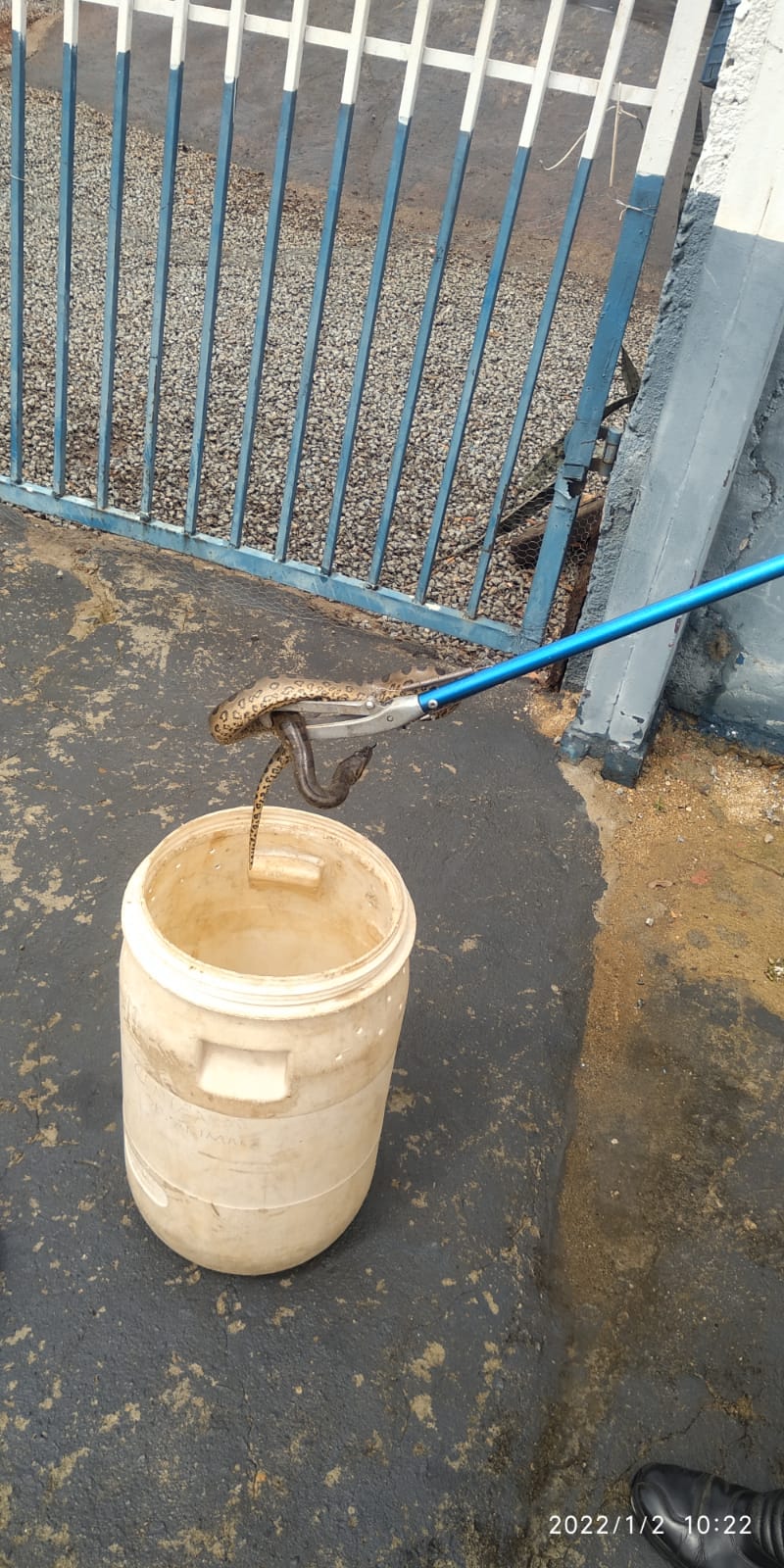 A cobra foi capturada usando o equipamento de segurança necessário e, depois, entregue a um Centro de Triagem de Animais Silvestres (Cetas).