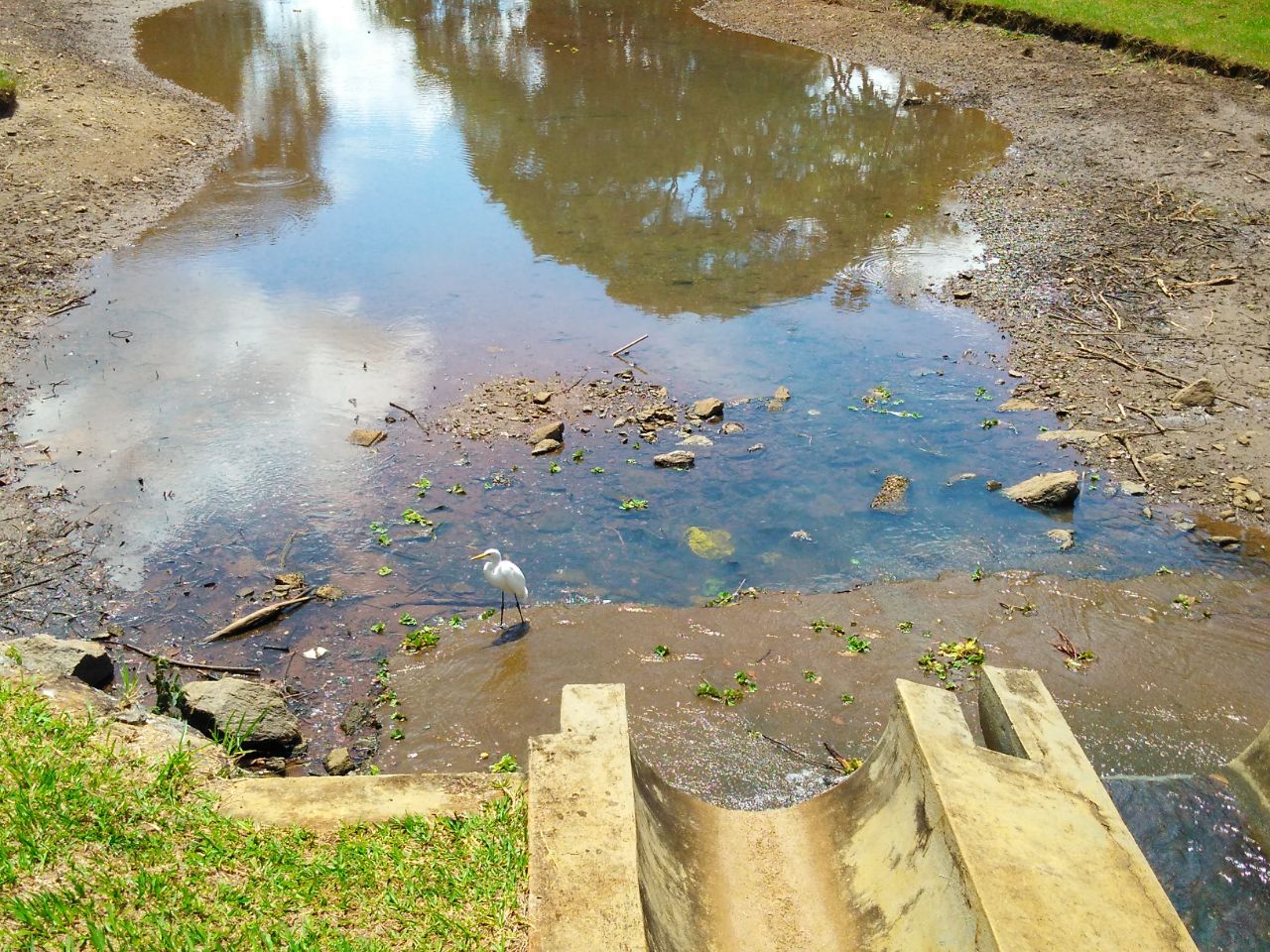 Uma fissura aberta na caixa de concreto de uma galeria pluvial fez com a água da bacia hidrográfica escoasse pelos canais, ao invés de cair direto no Lago das Rosas, em Goiânia. Segundo a Agência Municipal de Meio Ambiente (Amma), esse foi o motivo pelo qual parte do lago secou. Para quem circula no parque, entre o Centro e o Setor Oeste, é impossível não parar para observar uma grande extensão, antes coberta por água, agora tomada por lama.