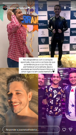 Assessoria de João Neto e Frederico manifestou pesar nas redes sociais: 'que a saudade vire força'
