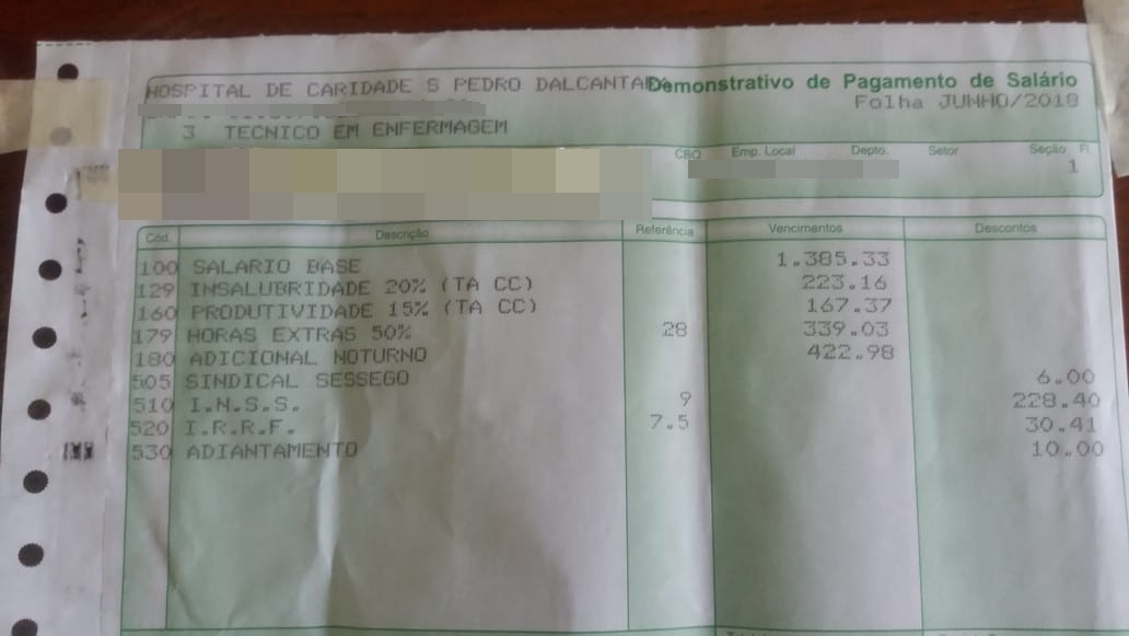 “Todos, exceto médicos do pronto-socorro, estão sem receber há quatro meses. Segundo a direção, os repasses não estão sendo feitos. Só não falta alimento para as refeições no hospital por que supermercados têm nos doado. Mas a situação de muitos em casa é calamitosa, já teve inclusive gente despejada por que não pagava aluguel”, pontua. De acordo com ela, adiantamentos também têm sido negados. “Quando procuramos a direção, ainda perguntam para que queremos o dinheiro. É humilhante, queremos porque é nosso dinheiro”, reforça.