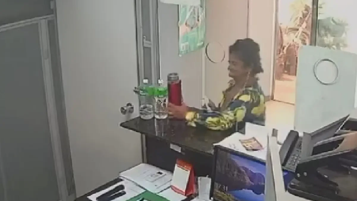 Imagens do circuito interno de segurança auxiliaram na identificação da suspeita no interior da delegacia. Na gravação, a mulher aproveita a movimentação no local, passa o braço por uma abertura no guichê de atendimento e retira o item do agente. Após esconder o objeto, ela foge da unidade policial.